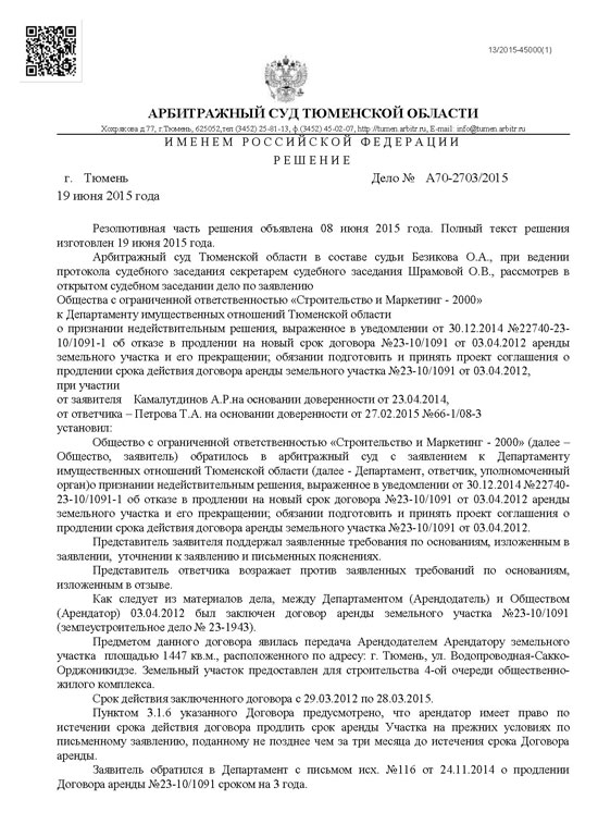 Соответственно, юристы нашей компании ведут дела очно в Арбитражных судах Тюменской области, Калининградской области, Омской области, Краснодарского края. Также участвуют в рассмотрении апелляционных и кассационных жалоб в Восьмом арбитражном апелляционном суде в городе Омске, в Пятнадцатом арбитражном апелляционном суде в городе Ростов-на-Дону, Арбитражном суде Северо-Кавказского округа в г. Краснодаре.